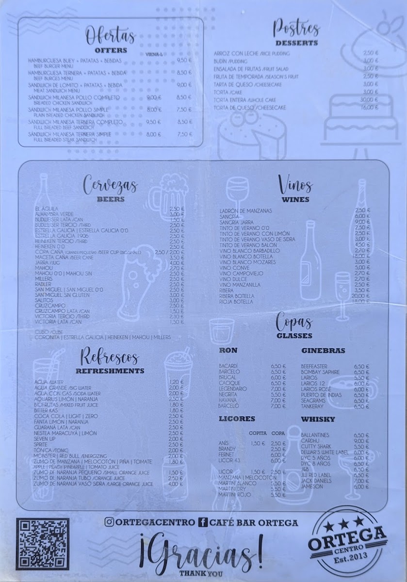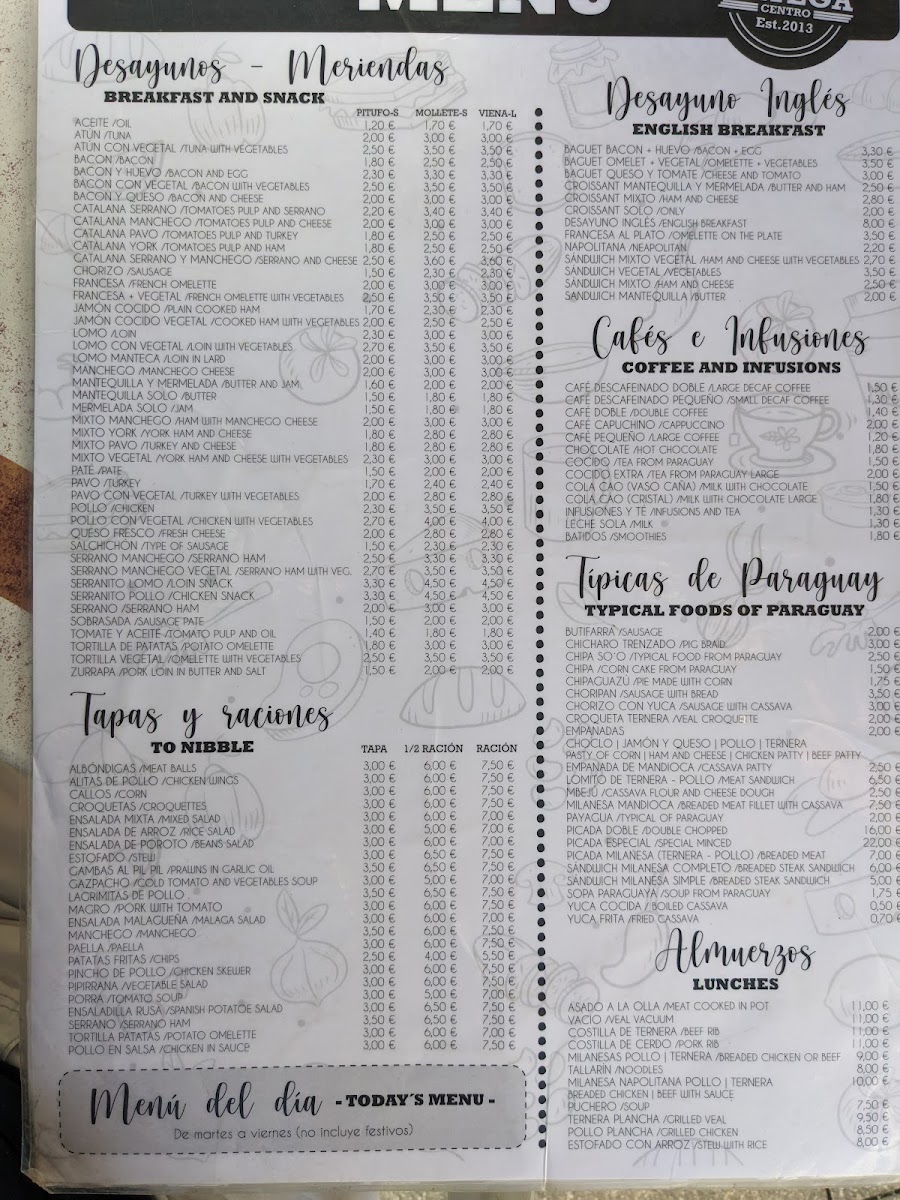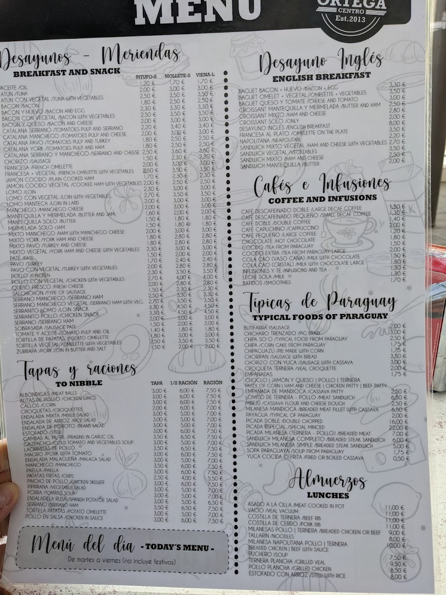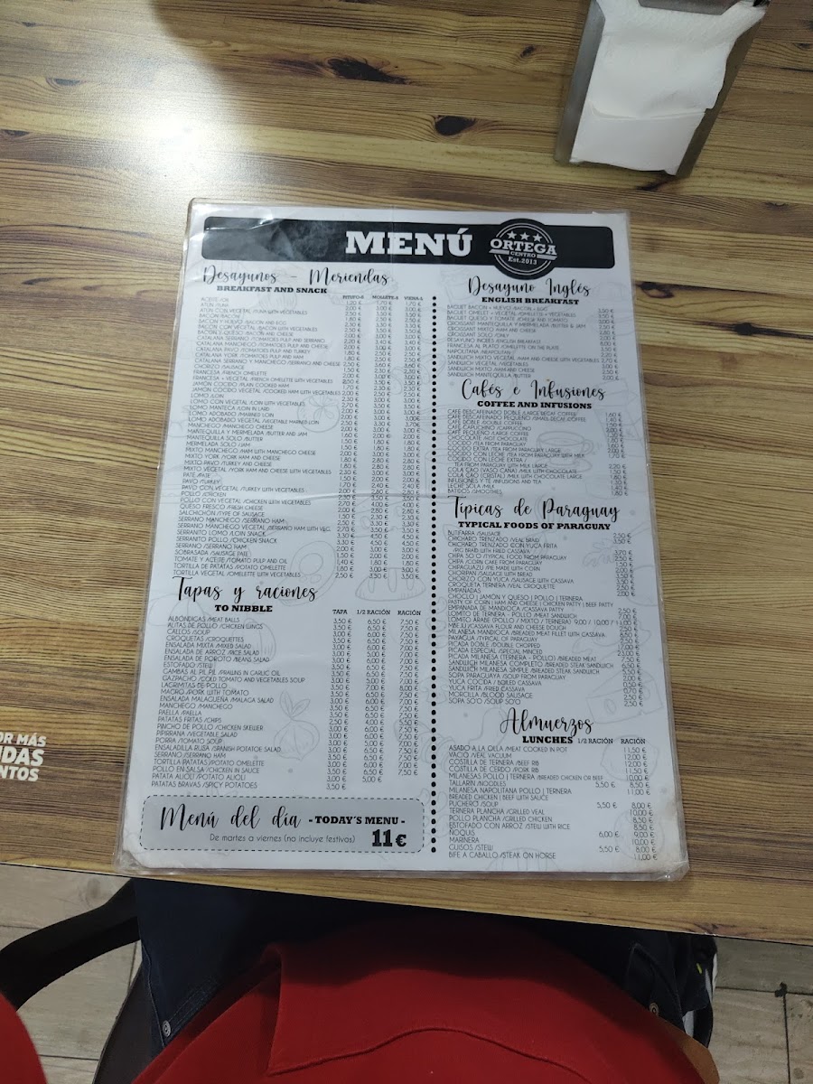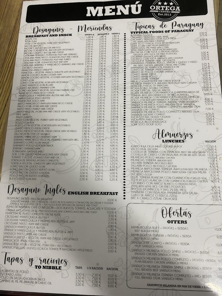 If you find yourself in the bustling Centro district of Malaga, make sure to visit Cafe Bar Ortega Centro. This charming bar offers a diverse menu that expertly combines traditional Spanish flavors with vibrant Paraguayan cuisine. Start with the hearty Empanada De Ternera for a taste of home-cooked goodness at just €3.00. For those craving something more substantial, their Hamburguesa De Ternera topped with egg, bacon, and fresh veggies is a must-try at €9.00. Many customers rave about the menu del día for an affordable €10, providing generous portions of delightful dishes.